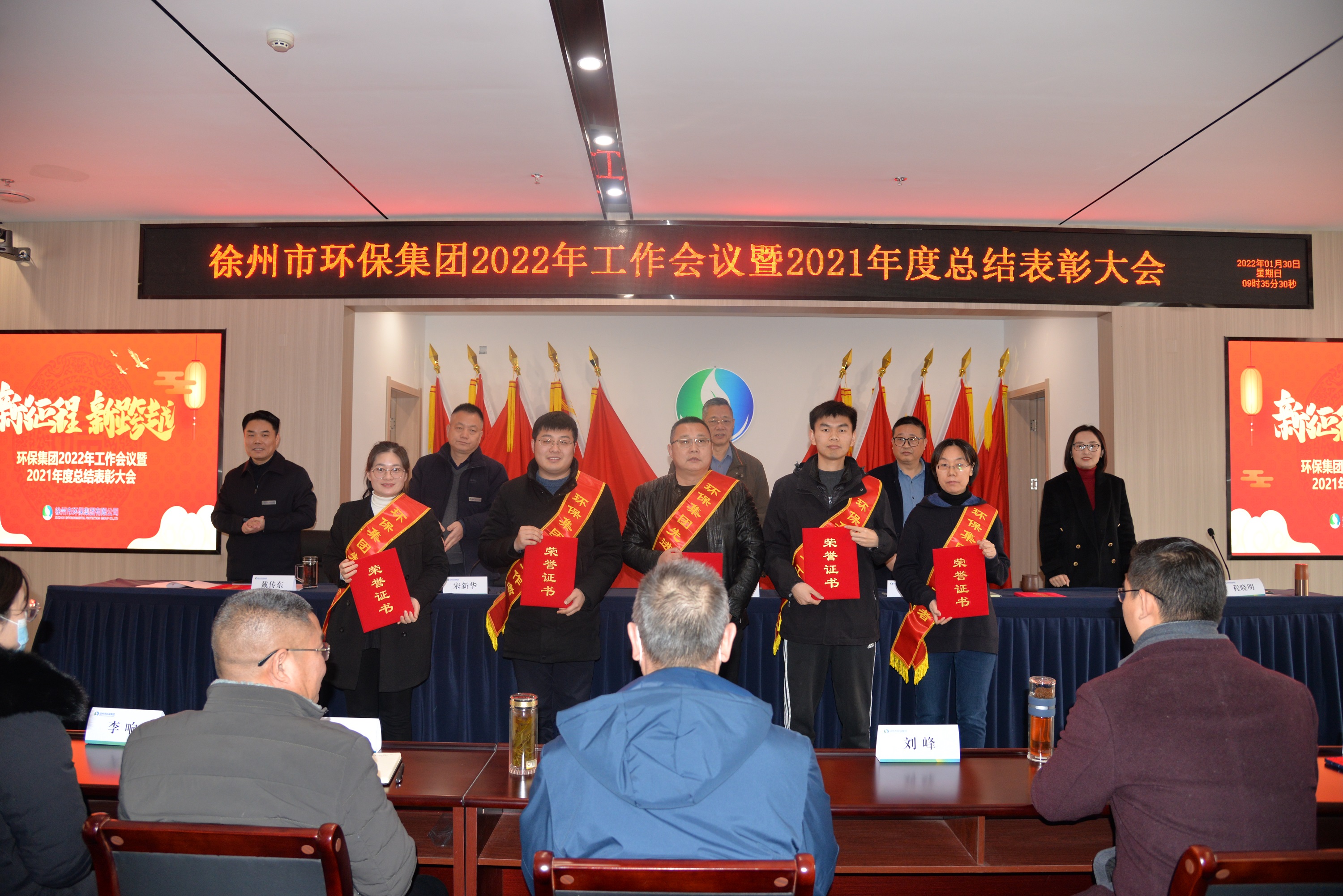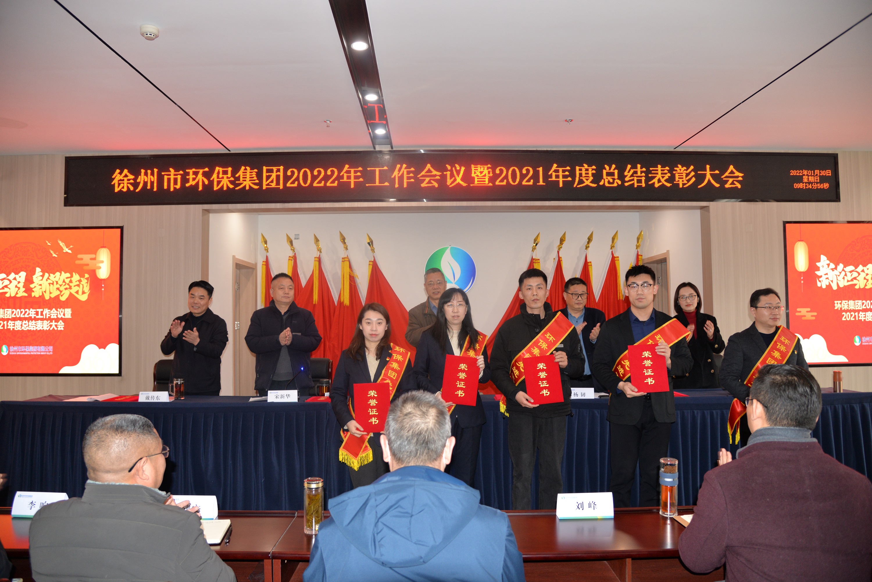 1月30日,徐州市环保集团召开2022年工作会议暨2021年总结表彰大会。坚持以习近平新时代中国特色社会主义思想为指导,全面贯彻落实党的十九届六中全会和省、市党代会精神,深入落实习近平总书记视察徐州工作重要指示和习近平生态文明思想,总结2021年工作,系统研判当前形势,研究部署2022年重点工作任务,对2021年工作中表现突出的先进集体和先进工作者进行表彰,动员全体干部职工凝心聚力、解放思想、持续奋斗,不断践行生态环境守护者的使命,为集团公司高质量发展,为建设“强富美高”新徐州作出新的贡献。集团公司领导班子出席会议,集团公司各部室人员和各二级、三级公司主要负责人,受表彰的先进集体代表和先进工作者参加会议。会议由集团公司党委委员、副总经理宋新华主持。